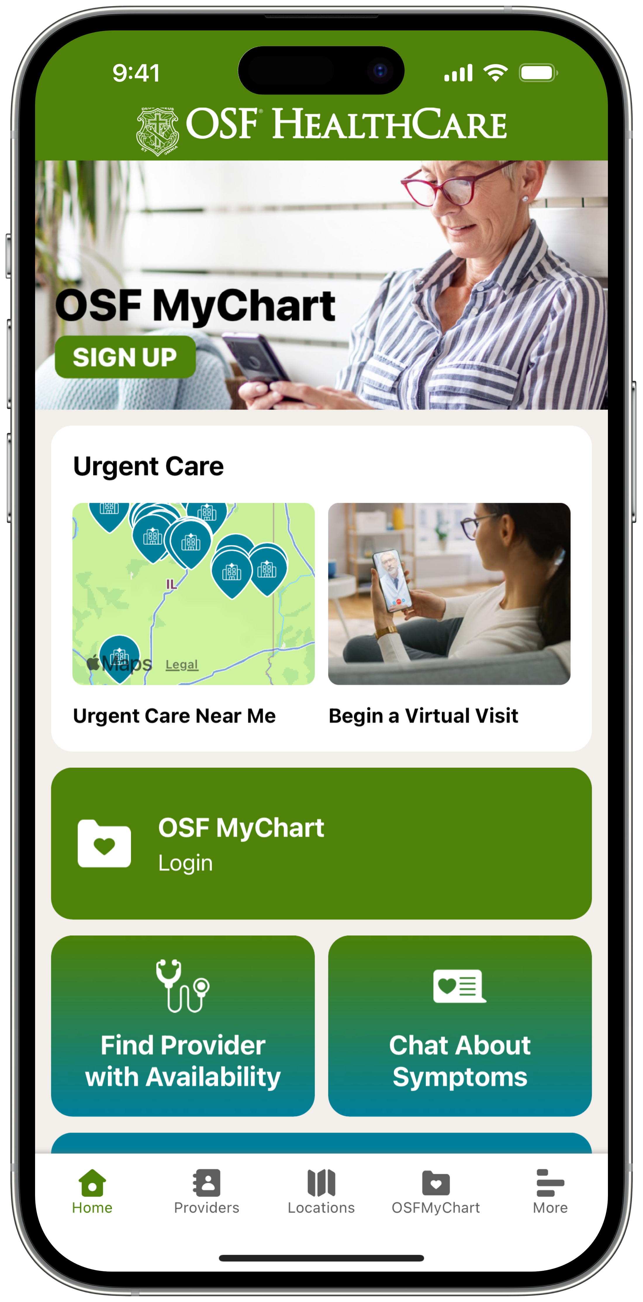 Need care? We've got you covered. Check out My OSF, your all-in-one app for quick and easy access to everything you need as an OSF HealthCare patient. Whether it’s finding a provider, scheduling appointments or paying bills, My OSF makes it simple.
